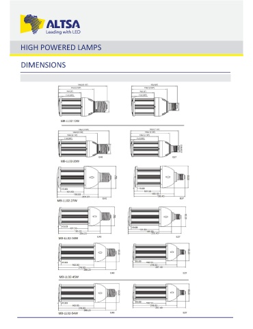 HIGH POWERED LAMPS DIMENSIONS