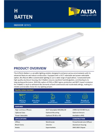 The ALTSA H-Ba en is a versa le ligh ng solu on designed to enhance various environments with its