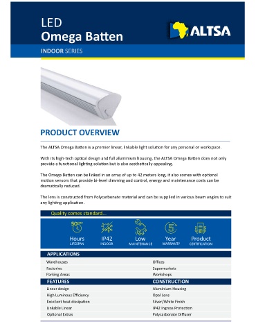The ALTSA Omega Ba en is a premier linear, linkable light solu on for any personal or workspace.