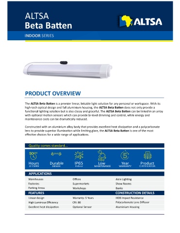 The ALTSA Beta Ba en is a premier linear, linkable light solu on for any personal or workspace. With its