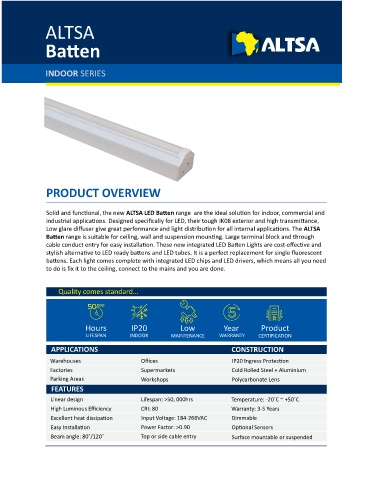 Solid and func onal, the new ALTSA LED Ba en range are the ideal solu on for indoor, commercial and