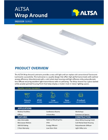 The ALTSA Wrap Around Luminaire provides a very so light and can replace old conven onal fluorescent
