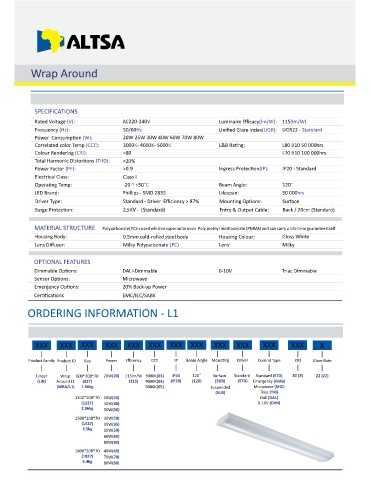 Correlated color Temp (CCT): 3000K- 4000K- 5000K L&B Ra ng: L80 B10 50 000hrs