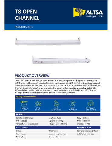 Various Power Consump ons T8 Open Channel Fi ng Available in IP20