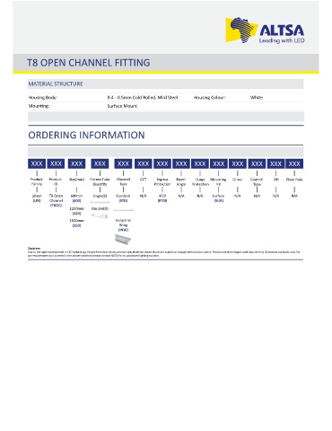 Product Product Size(mm) Fixture Tube Channel CCT Ingress Beam Surge Moun ng Driver Control CRI Glare Rate