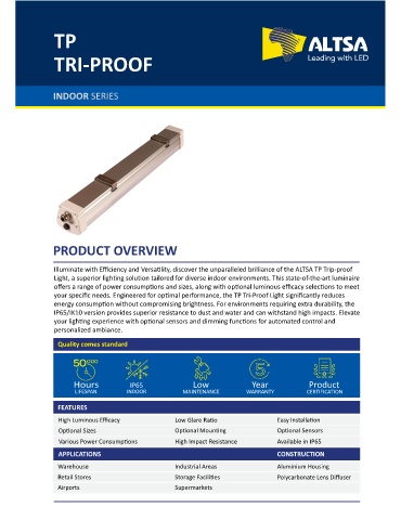 Illuminate with Efficiency and Versa lity, discover the unparalleled brilliance of the ALTSA TP Trip-proof
