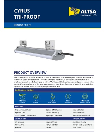 The ALTSA Cyrus Tri-Proof is a high-performance, heavy-duty luminaire designed for harsh environments.