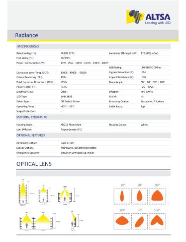 Total Harmonic Distor ons (THD): <15% Beam Angle: 30° | 60° | 90° | 120°
