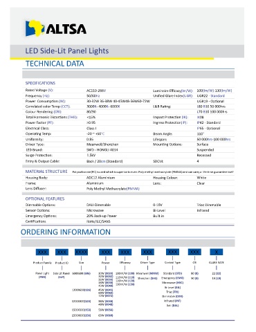 Correlated color Temp (CCT): 3000K- 4000K- 6000K L&B Ra ng: L80 B10 50 000hrs