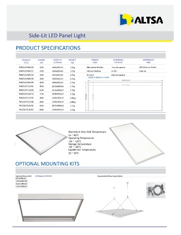 PRODUCT POWER SIZE(mm) WEIGHT SENSOR DIMMABLE EMERGENCY