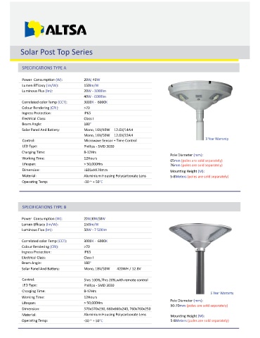 Opera ng Temp: -30 ~ + 50°C 5-8Meters (poles are sold separately)
