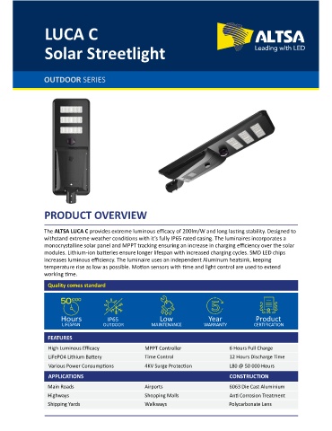 The ALTSA LUCA C provides extreme luminous efficacy of 200lm/W and long las ng stability. Designed to