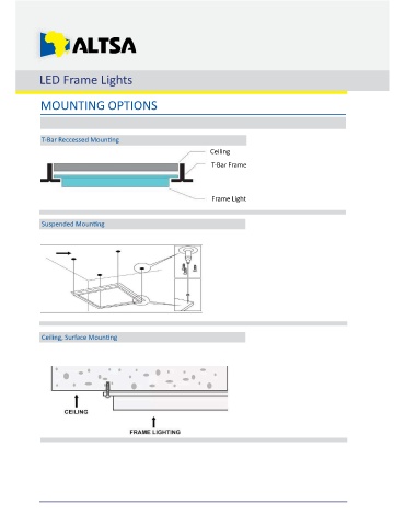 LED Frame Lights MOUNTING OPTIONS T-Bar Reccessed Moun ng Ceiling T-Bar Frame Frame Light Suspended Moun ng Ceiling, Surface Moun ng