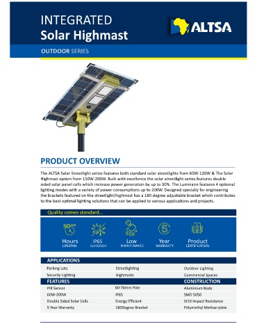 Highmast op on from 150W-200W. Built with excellence the solar streetlight series features double