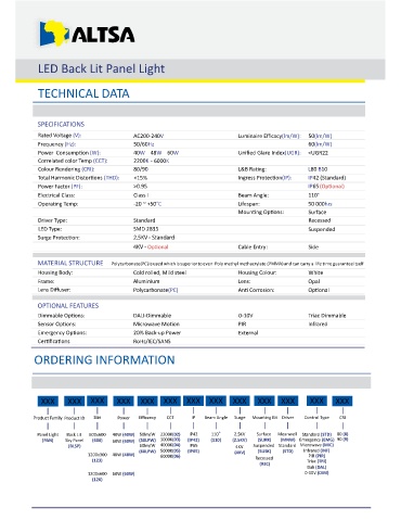 Panel Light Back Lit 600x600 40W (40W) 50lm/W 2200K(02) IP42 110° 2.5KV Surface Meanwell Standard (STD) 80 (8)