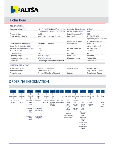 Product Family Product ID Size(mm) Power Efficency CCT IP IK Beam Angle Cable Entry Moun ng Control Type CRI Surge