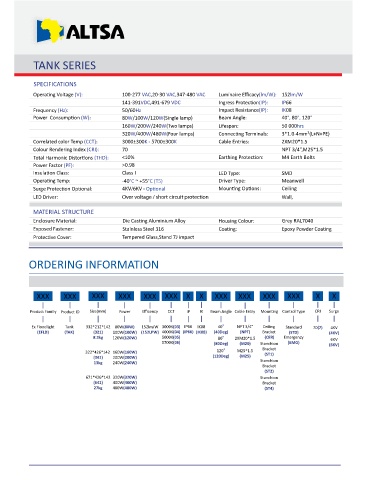 Product Family Product ID Size(mm) Power Efficency CCT IP IK Beam Angle Cable Entry Moun ng Control Type CRI Surge
