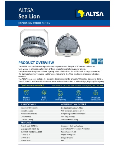 The ALTSA Sea-Lion features high efficiency chipsets with a lifespan of 50 000hrs and can be