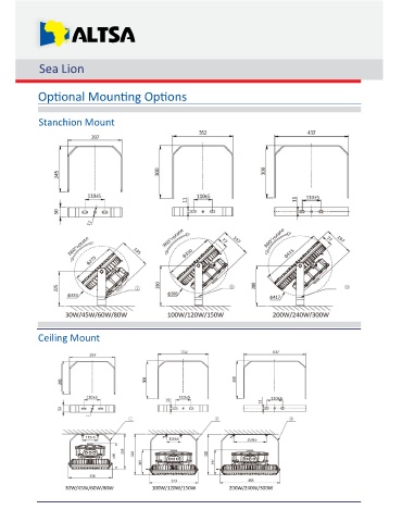 Sea Lion Op onal Moun ng Op ons Stanchion Mount Ceiling Mount