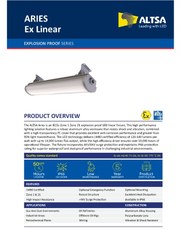 The ALTSA Aries is an IECEx Zone 1 Zone 21 explosion-proof LED linear fixture, This high-performance