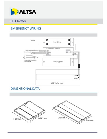 LED Troffer EMERGENCY WIRING DIMENSIONAL DATA