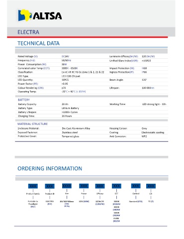 Ba ery Capacity 20 Ah Working Time: LED strong light - 10h