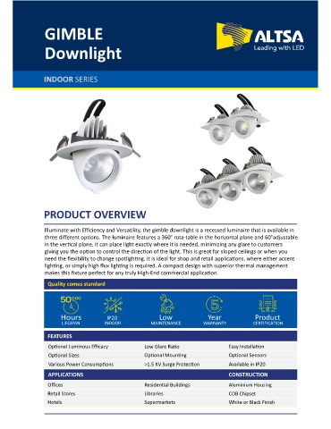 Illuminate with Efficiency and Versa lity, the gimble downlight is a recessed luminaire that is available in