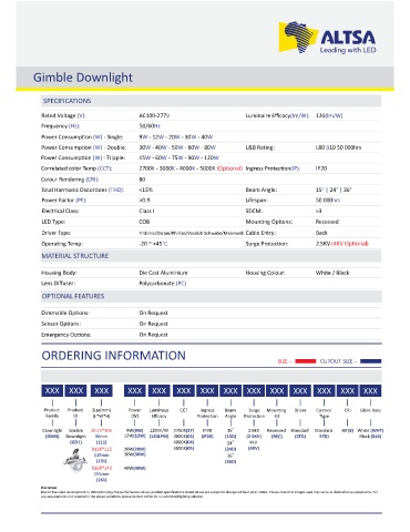 Product Product Size(mm) Power Luminous CCT Ingress Beam Surge Moun ng Driver Control CRI Glare Rate