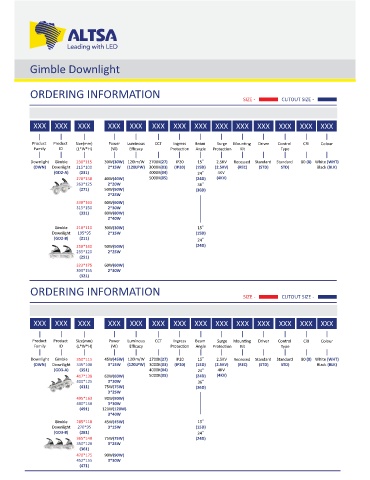 Product Product Size(mm) Power Luminous CCT Ingress Beam Surge Moun ng Driver Control CRI Colour