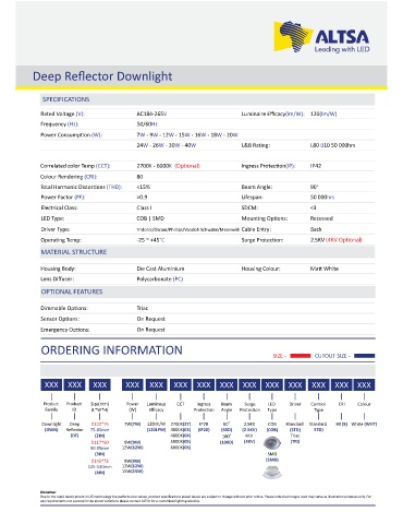 Product Product Size(mm) Power Luminous CCT Ingress Beam Surge LED Driver Control CRI Colour