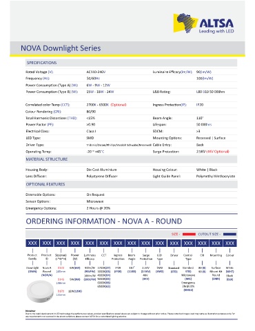 Product Product Size(mm) Power Luminous CCT Ingress Beam Surge LED Driver Control CRI Moun ng Colour