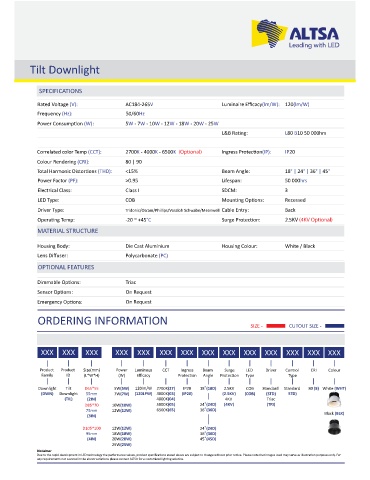 Product Product Size(mm) Power Luminous CCT Ingress Beam Surge LED Driver Control CRI Colour