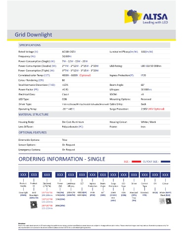 Power Consump on (Double) (W): 2*7W - 2*12W - 2*15W - 2*20W L&B Ra ng: L80 B10 50 000hrs