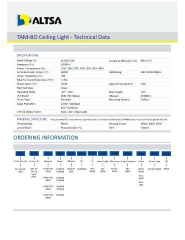 Product Family Product ID Size(mm) Power Efficency CCT IP Beam Angle Moun ng Surge Protec on Colour Control Type CRI