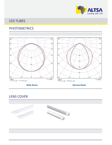 LED TUBES PHOTOMETRICS Wide Beam Narrow Beam LENS COVER