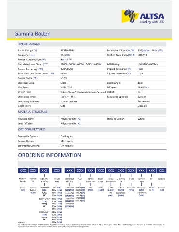 Product Product Size(mm) Power Luminous CCT Ingress Beam Surge Moun ng Driver Control CRI Op onal