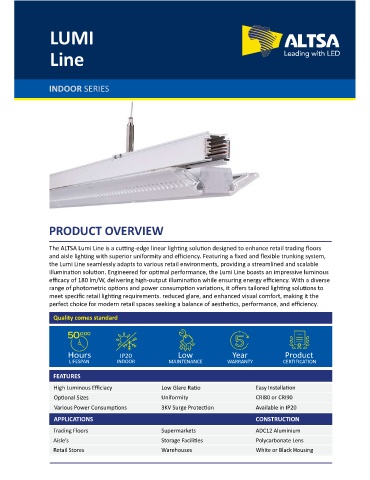 The ALTSA Lumi Line is a cu ng-edge linear ligh ng solu on designed to enhance retail trading floors