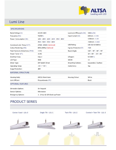 Correlated color Temp (CCT): 2700K- 6500K L&B Ra ng: L80 B10 50 000hrs