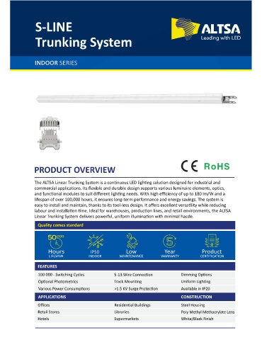 The ALTSA Linear Trunking System is a con nuous LED ligh ng solu on designed for industrial and