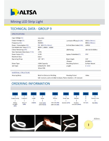 Mining Group 9 5M(5M) 5W/M (005) 350lm/M (350) Standard (STD) Machine IP67 (67) Reel (REL)