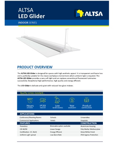 ALTSA LED Glider provides a very so light and can replace conven onal fluorescent luminaires