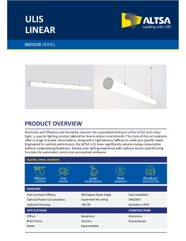 Illuminate with Efficiency and Versa lity, discover the unparalleled brilliance of the ALTSA ULIS Linear