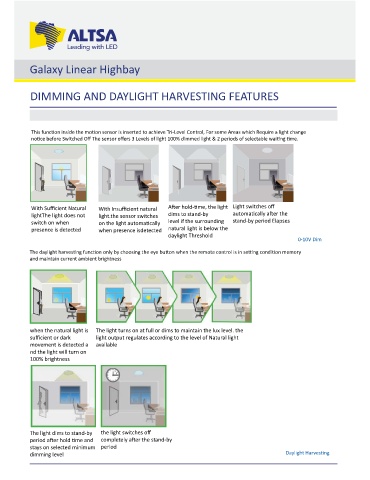 DIMMING AND DAYLIGHT HARVESTING FEATURES