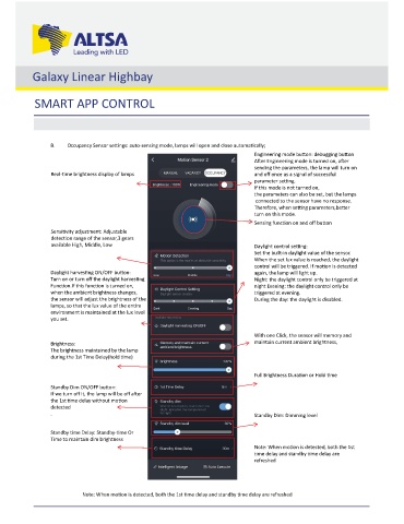 B. Occupancy Sensor se ngs: auto-sensing mode, lamps will open and close automa cally;