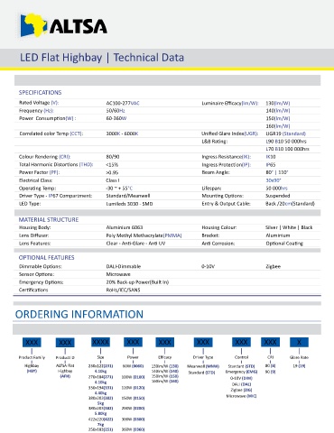 Highbay ALTSA Flat 230x122(231) 60W (0060) 130lm/W (130) Meanwell (MNW) Standard (STD) 80 (8) 19 (19)
