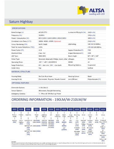 ORDERING INFORMATION - 190LM/W-210LM/W