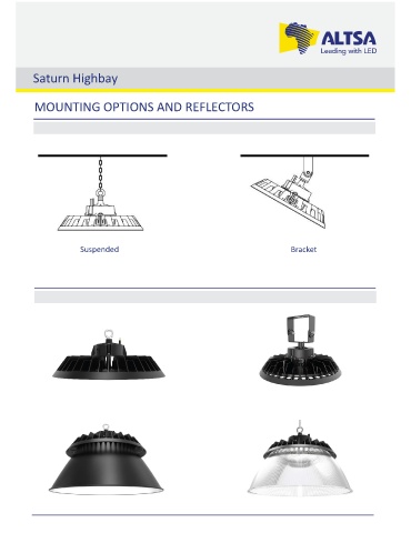 Saturn Highbay MOUNTING OPTIONS AND REFLECTORS Suspended Bracket