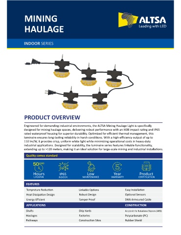 Engineered for demanding industrial environments, the ALTSA Mining Haulage Light is specifically