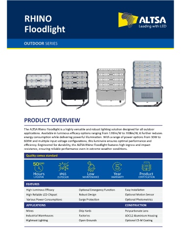 efficiency. Engineered for durability, the ALTSA Rhino Floodlight features high ingress and impact