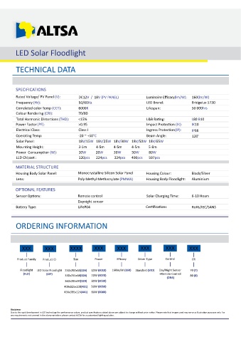 Floodlight LED Solar Floodlight 250x200x68(226) 10W (0010) 160lm/W (160) Standard (STD) Day/Night Sensor 70 (7)